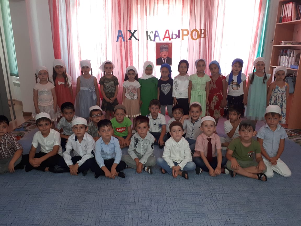 Воспитатели ознакомили детей с историей его жизни, и героизме первого президента.Светлая память Первому Президенту Чеченской Республики Ахмату-Хаджи Кадырову. Его имя навсегда вписано в героическую историю России, оно будет жить в сердцах благородных потомков до тех пор, пока жива Чеченская Республика. Ахмат-Хаджи Кадыров - первый герой Чечни посвятивший свою жизнь служению Чеченскому народу! Дала г1азот къобалдойлацуьна! В рамках реализации плана работы на летне-оздоровительный период в МБДОУ во всех возрастных группах проведены мероприятия посвященные Дню рождения А-Х.Кадырова с целью ознакомления дошкольников с биографией и интересными фактами из жизни Ахмат-Хаджи Кадырова, который с самого начала принял позицию мира и созидания и вернул нашу республику к светлому будущему.