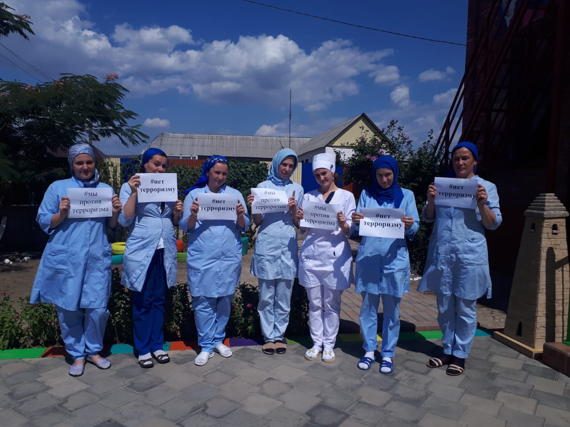 Сотрудники МБДОУ "Детский Сад "Ясин" с.Самашки" организовали Флеш моб "Мы против терроризма"