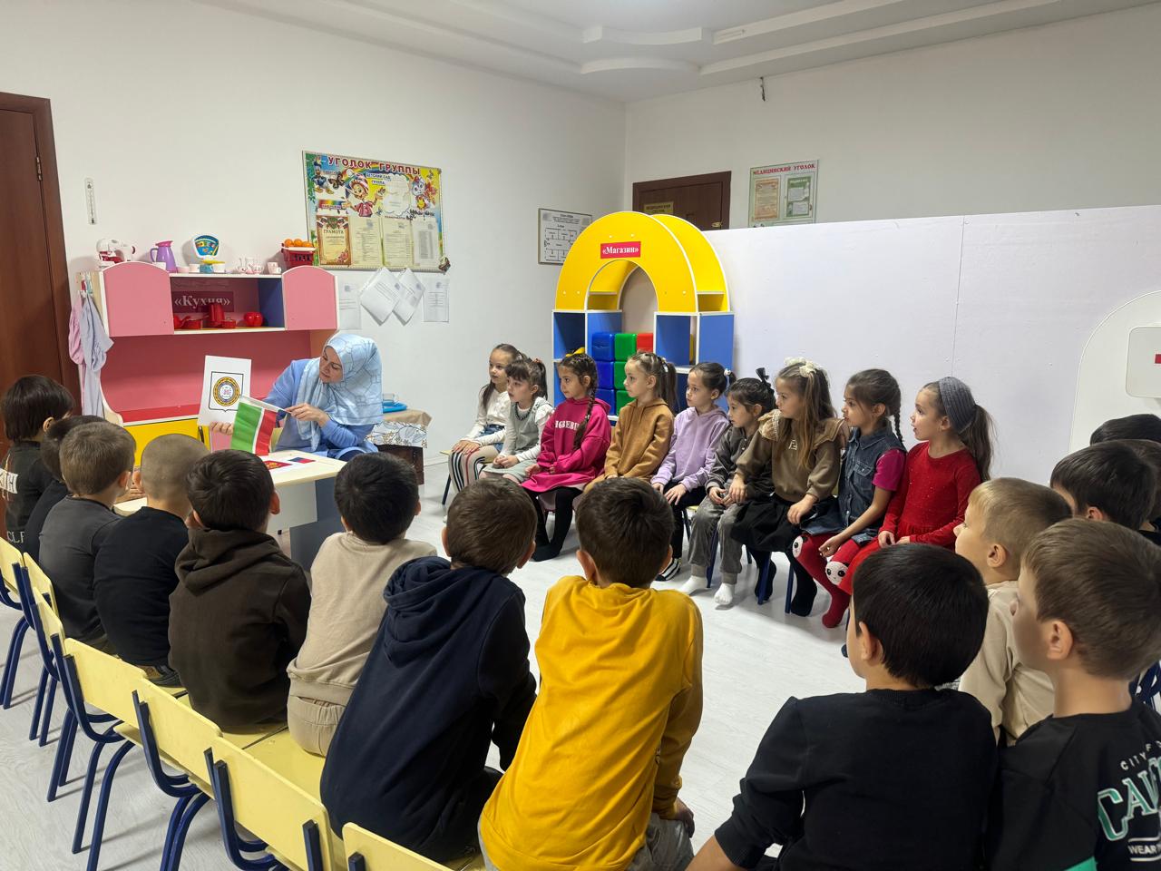 04.11.20244 ноября в МБДОУ «Детский сад «Ясин» с э.Самашки» была проведена тематическая беседа ко Дню Народного Единства в старшей группе «Котята» . Цель: формировать активную гражданскую позицию, воспитывать интерес к истории своей Родины.
