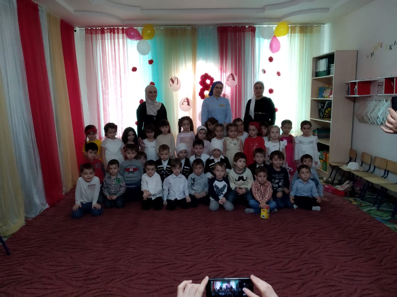 Цветы из шаров, букеты из цветов тематические газеты, а также красивая музыка и прекрасные детские наряды сопровождали весь праздник. Дети пели песни, танцевали. На утренниках присутствовали родители воспитанников, которые приняли активное участие в подготовке и проведении утренника. Провели конкурсы для родителей.